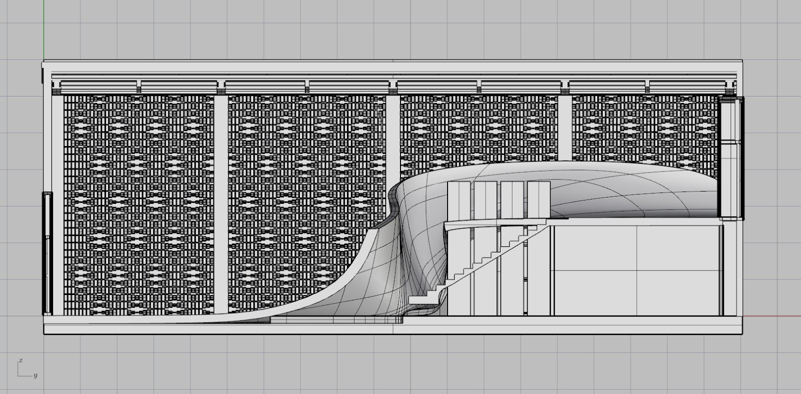 I modeled my sound visualization pattern in rhino with small wooden panels. I also tried to render in keyshot initially but wasn't getting the results I was wanting so switched to V-ray for some rendering.